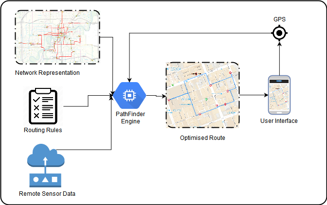 By learning from simulations, the AI behind PathFinder is able to learn optimal routes and advanced deployment strategies for complex environments. Where traditional routing is planned ahead of time based on simple principles like "shortest path", PathFinder dynamically responds to changing environmental conditions to give up-to-the-minute routes according to predefined rules and objectives.